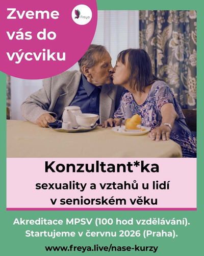Zveme vás na 2. běh výcviku Konzultant*ka sexuality a vztahů u lidí v seniorském věku (začínáme v červnu 2026) a již 6. běh výcviku Konzultant*ka sexuality a vztahů u lidí s mentálním znevýhodněním a PAS (začínáme v říjnu 2026).