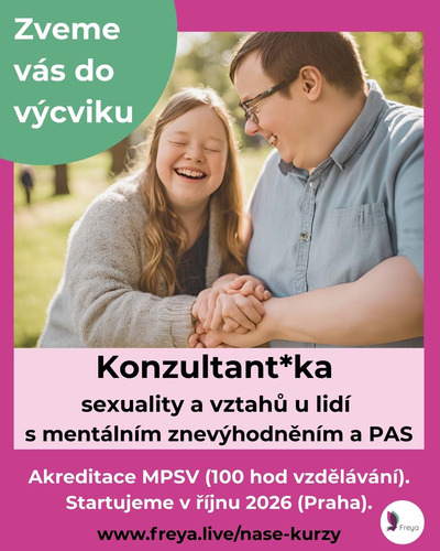 Leták Konzultant*ka sexuality a vztahů u lidí s mentálním znevýhodněním a PAS - ZDE, přihláška a více info ZDE.
