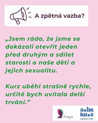 Rodičovské skupiny jsme zajistili zdarma díky projektu Otevřená cesta – Podpora sexuality a vztahů mladých lidí se znevýhodněním. Děkujeme Nadačnímu fondu Abakus.