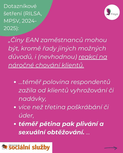 V článku nás zaujalo mimo jiné, že sexualizované násilí ze strany klientů*klientek vůči personálu zažila téměř pětina zaměstnanců. I my se v praxi setkáváme s výroky - obtěžování k mé profesi patří… Není tomu tak. Práce se sexualitou a vztahy je o nastavení hranic a systémové práci se sexualitou v zařízení (tým dodržuje nastavenou metodiku) - s nastavením a zavedením metodiky vám pomůžeme.