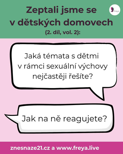 Podívejte se na další díl z minisérie Zeptali jsme se v dětských domovech (vol. 2). Dnes shrneme, co řeší “tety a strejdové” s dětmi v rámci sexuální výchovy nejčastěji, o jakých tématech si povídají a jak na ně reagují.
