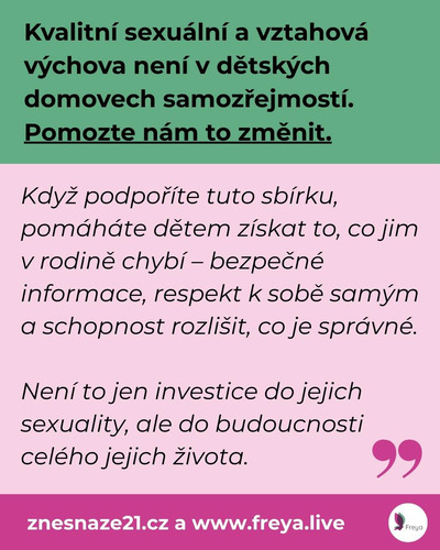 Pokud věříte, že sexuální výchova je nezbytná, podpořte ji třeba formou naší sbírky na Znesnáze. Má to smysl. Díky vám zajistíme další vzdělávání pro děti a personál dětských domovů.